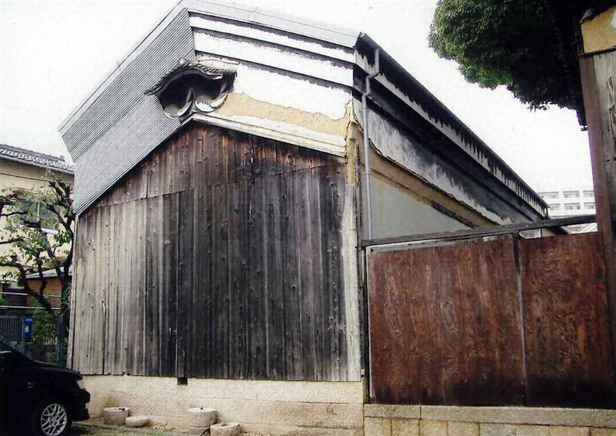 敷地北西隅に建つ。桁行12m梁間5.3mと規模の大きい2階建土蔵。屋根は切妻造で、もと本瓦葺で鉄板仮葺とする。布石積基礎上に建ち、外壁の一部を竪板張とする。通り側の妻上部に、漆喰で作られた唐破風と一対の円窓を設けて、際立った外観をつくる。