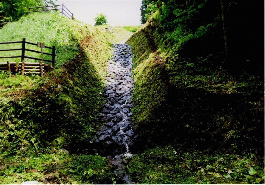 薬師沢左支富吉沢に築かれる。高低差26mの斜面に、4段よりなる延長63mの空石積水路工を緩やかに湾曲させながら連続的に築いたもので、薬師沢との合流地点には石積護岸を設ける。大規模な石造構造物ながら、環境と融和した河川景観をつくり出している。