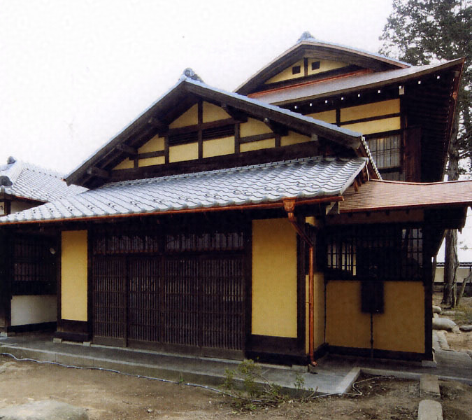 木造2階建を中心に事務室や台所などの棟からなる。主体部は1、2階とも座敷3室が1列に並び、最奥室にトコ等を設ける。屋根は起りのある桟瓦葺屋根で、軒まわりを銅板葺とする。外壁は黄漆喰仕上げ。平書院の瀟洒な建具など、洗練された意匠の近代和風建築。