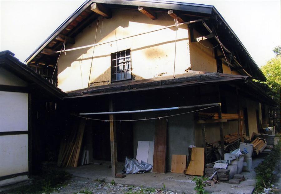 敷地北奥に位置する、南北棟の切妻造平屋建で、北端の屋根を一段下げ、南から東面に庇をまわす。桁行17m梁間5.7mの南北に長い倉庫で、外壁を大壁造の荒壁仕上げとする。内部は3つに区分し、南室のみ中2階床を張り、他2室は吹抜けとする。
