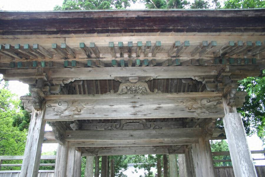 山門は、十七世紀中期に建築された切妻造、こけら葺の四脚門で、北海道の社寺建築としては最古の類に属し、つくりも良く、北海道の古い時代の社寺建築の様式を知る上で貴重である。