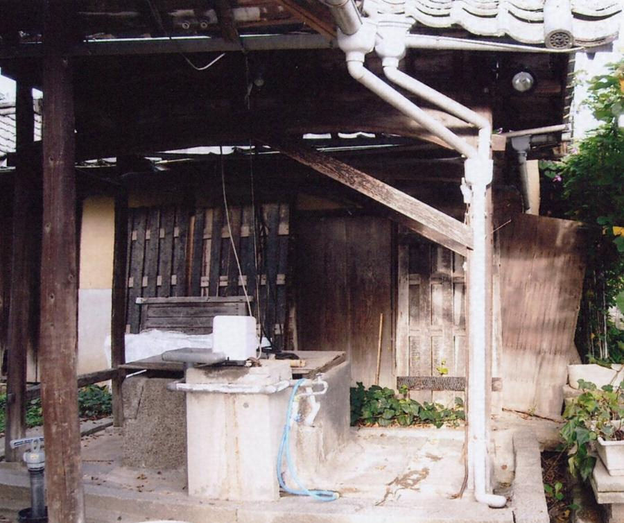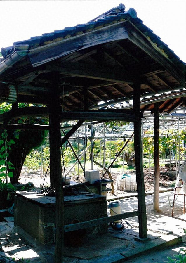 米蔵の東に位置する。桁行2.7m梁間1.4mの切妻造桟瓦葺。切石上に方柱を建て、貫で固め、頂部に梁と桁を架す。一軒疎垂木。中央に井戸を設け、井戸枠は凸状の花崗岩を組み合わせる。石敷の洗い場を周囲に設ける。近世の生活空間の一端を示す。