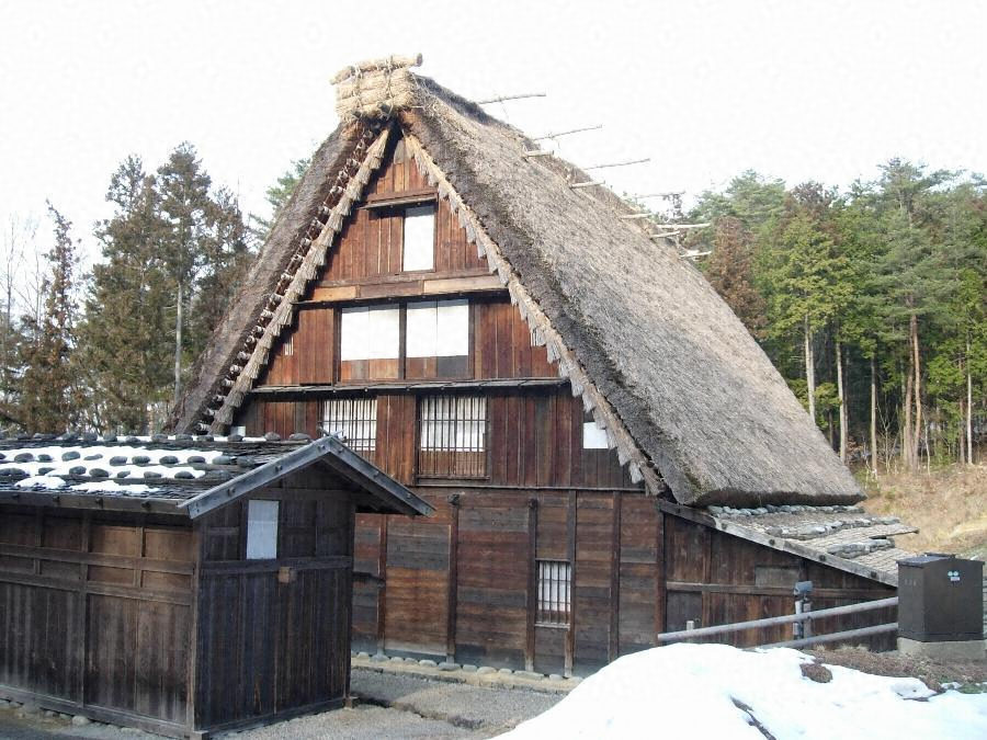 合掌造の農家。荘川村にあったが白川村との境に近かったため構造は荘川村系、外観や平面は白川村系と、 両地域の特徴を合わせもっている点に特色がみられる。良質で、改変も少ない。 昭和三十四年飛騨民俗村に移築された。