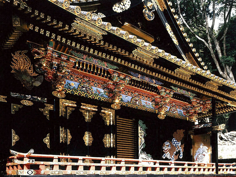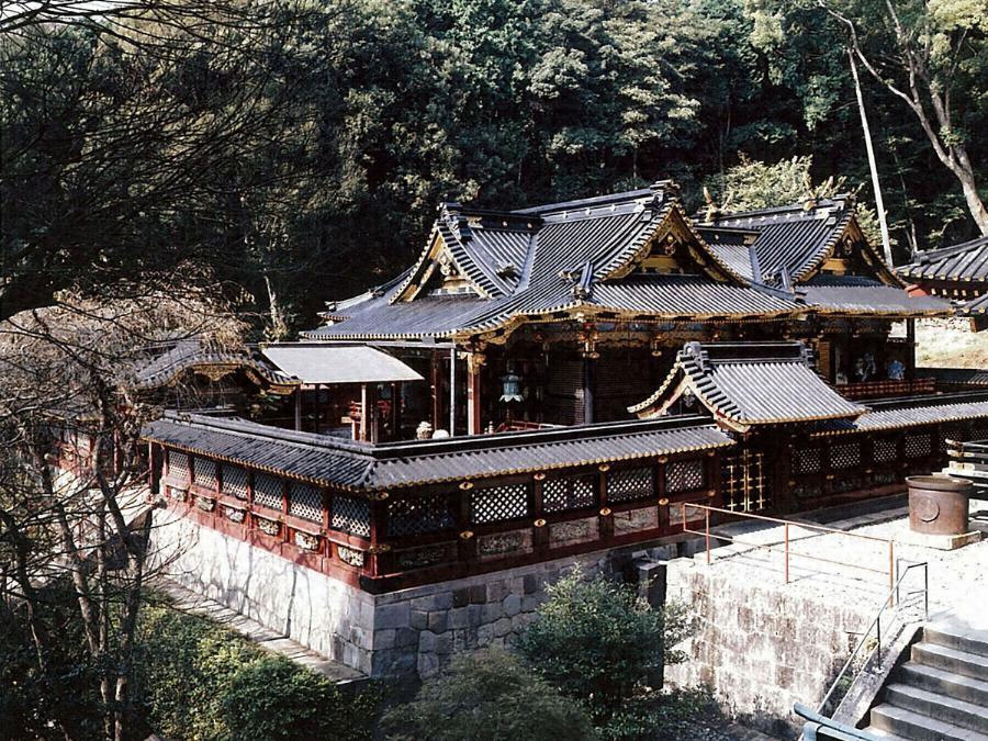 久能山東照宮は、徳川家康を祀る霊廟として創建され、元和3年(1617)に建立された本殿、石の間、拝殿は、いわゆる権現造の形式をもつ複合社殿で、中井大和守正清によって造営された。