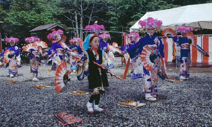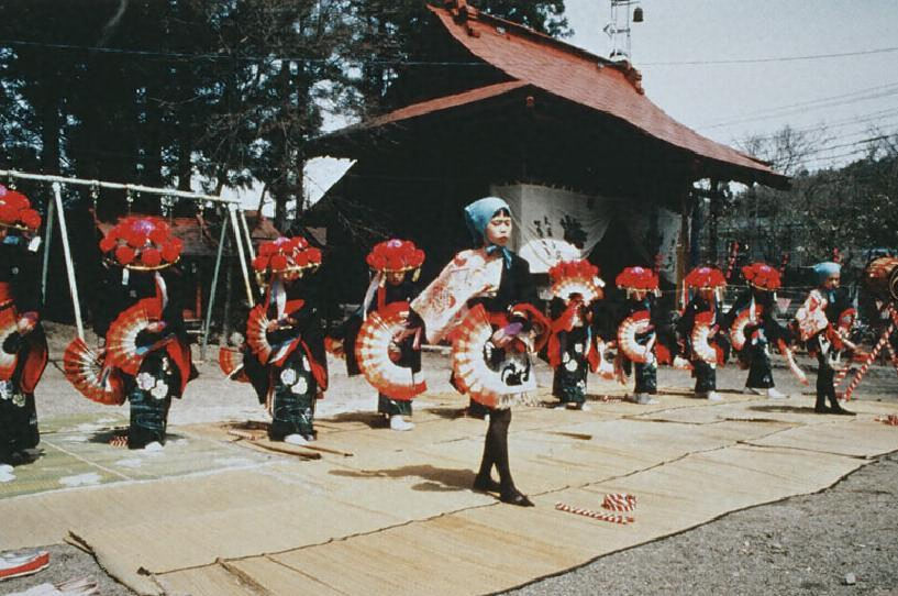年の初めに稲の豊作を予め祝うことによってその年の豊作を願う芸能で、もとは小正月に行われていたが、現在は湯元(ゆもと)、馬場(ばば)、長袋(ながふくろ)ともに社寺の祭礼時などに踊られている。