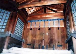 登廊を昇りきったところに位置し,板唐戸をもって内内院の入口とする。切妻造,檜皮葺,桁行一間梁間一間の規模で,渡廊とは棟続きであるが,板唐戸の上部は,渡廊側を蟇股・斗・舟肘木とし,登廊側を豕叉首として体裁を整えている。