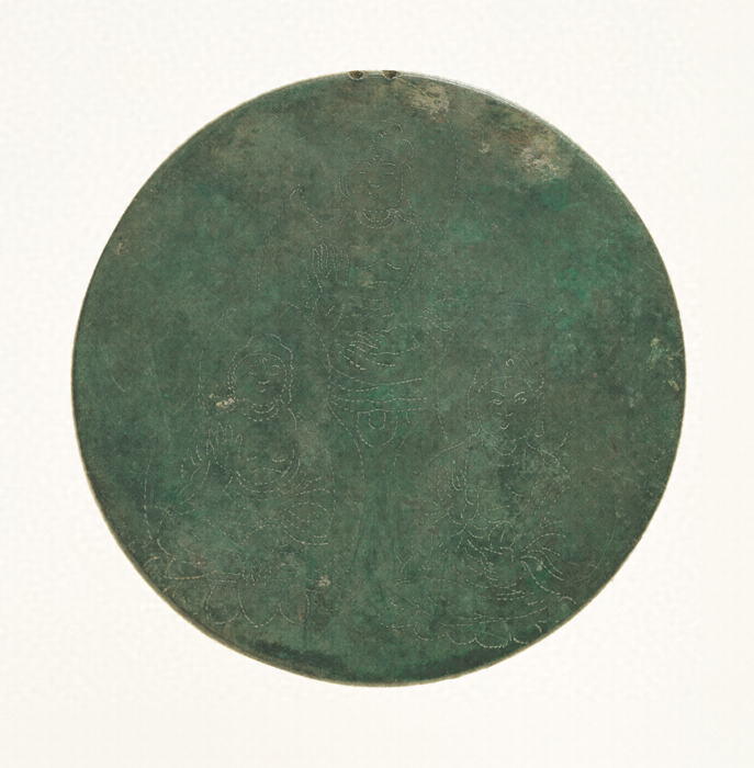 如来三尊鏡像(梅樹双雀鏡)(金峯山経塚出土)
