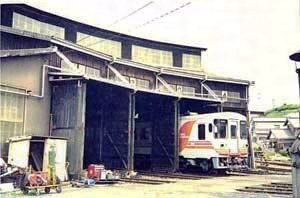 転車台とセットとなる。当初は6線分であったが,転車台から見て右側の2線分が切り縮められているが,他は主として車両の留置に用いられている。総木造で,庫内に下る柱を少なくするために力強い架構をもつ。現在では数少ない現役扇形庫の好例である。