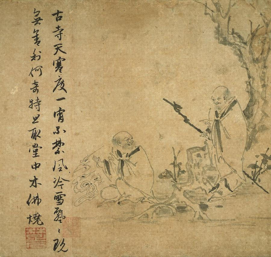 紙本墨画禅機図断簡〈因陀羅筆/(丹霞焼仏図)〉