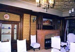 主屋の南側に位置する。1階はRC造で,外壁石張の洋間には矩形上げ下げ窓とステンドグラスの入った2連の尖頭アーチ型窓が付けられる。精緻な細工を凝らした漆喰天井や装飾照明が,内部空間に華美な趣を与える。2,3階は木造の和風。設計施工は清水組。