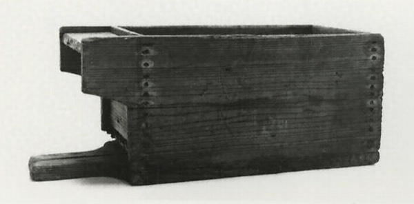 箱の内法は縦25.0cm。横51.0cm。深さ28.0cm。板の厚さ2.4cm。排出口の長さ19.0cm。