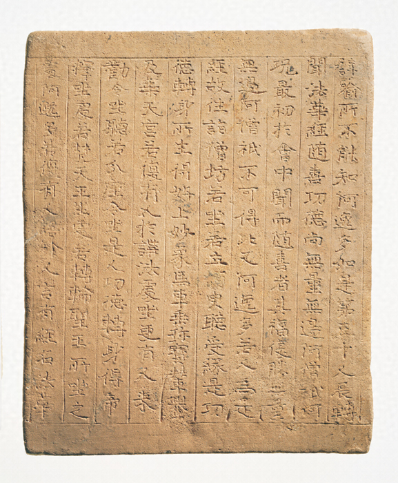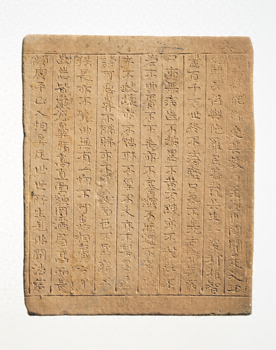 埋経(まいきょう)を目的に経文(きょうもん)を粘土板に刻んで焼成したものを瓦経(がきょう)という。本瓦経は天地(てんち)および行間に界線(かいせん)を引き、片面10行17字詰で表裏に経文を刻字(こくじ)する。刻字された経文は『法華経』巻第六・随喜功徳品(ずいきくどくほん)の一部で、各10行で割り付けると巻第六の16枚目にあたることから、裏面天部(てんぶ)の刻字「十六」は丁付(ちょうづけ)をあらわすと解される。出土地を示すものはないが、これらの特徴は福岡市・飯盛山(いいもりやま)出土瓦経と一致し、刻字も似ていることからその1枚と思われる。飯盛山瓦経には永久2年(1114)の年紀をもつものがあり、本瓦経も12世紀初めの制作とみられる。