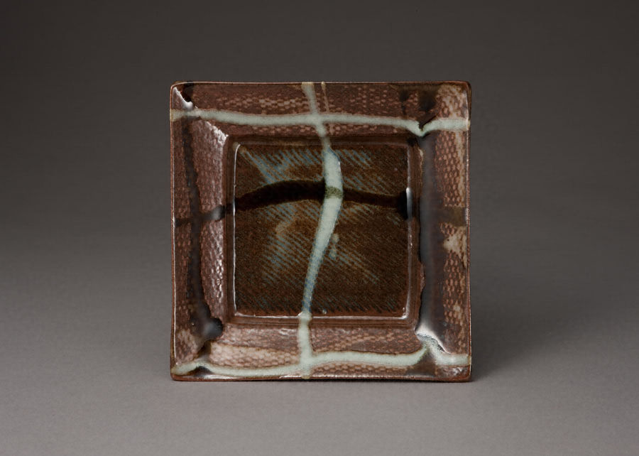 地釉縄文象嵌角皿