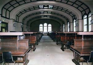 RC造5階建の図書館建築。外観は下層のみ正方形タイルとし,軒にはロンバルディア帯を廻らす。2階大閲覧室はアーチによる大空間とし,正面階段上部のステンドグラスのトップライトなど意匠を凝らす。室内外とも質の高いデザインを誇る学校建築の好例。