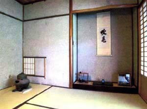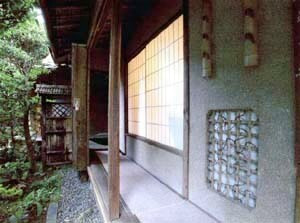主屋座敷の西方に東西棟,銅板葺で建ち,座敷裏の縁から渡り縁で繋がる。3畳水屋と6畳茶室から成り,西面北寄りに床を設け,南寄りに風呂先窓を開ける。内部に鴨居を渡し4畳半茶室として使えるようにしている。主屋座敷との間に便所と風呂を配する。