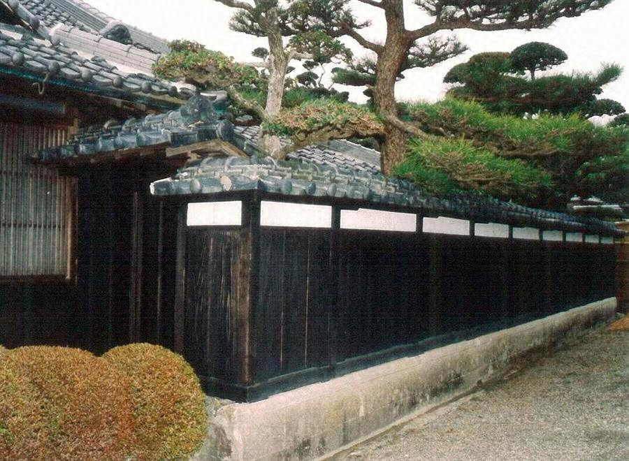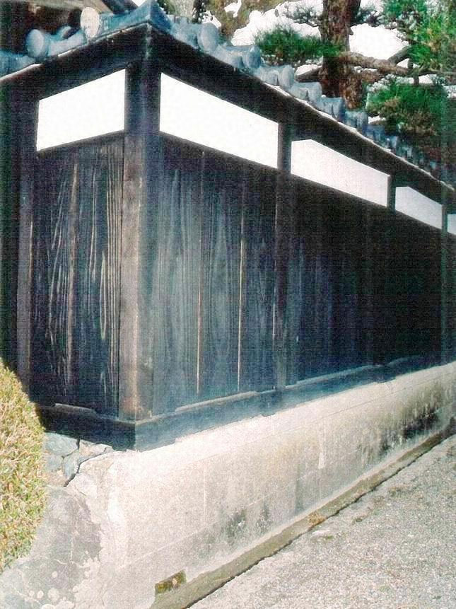 主屋床上部南面中央に突出する4畳半の東南端に発し,座敷庭を取り囲むように建ち,土蔵東南端に取り付く。主屋寄りには瀟洒な腕木門を開く。切石を丁寧に積んだ基礎の上に建つ真壁造,桟瓦葺で,棟高2m,腰を竪板張,上部の小壁を漆喰塗とする。