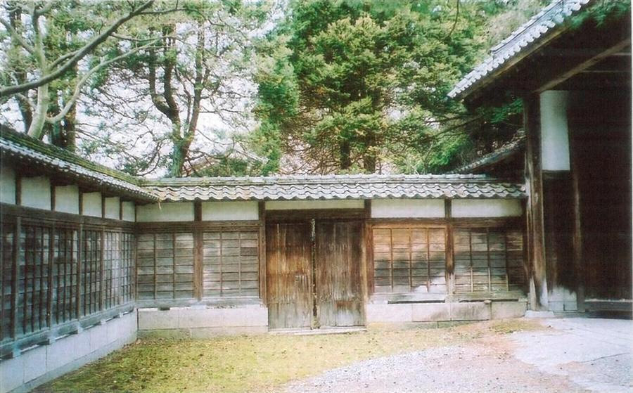 主屋の北側,屋敷地前面道路に沿って建つ。桁行7間,梁間1間半規模,両脇桁行2間分を部屋とした長屋門。昭和10年に門口部を高くするとともに,大門背面側には門口の西脇から主屋方に矩折れに,石積布基礎,木造の屋根塀を延ばす特異な構えに改めている。