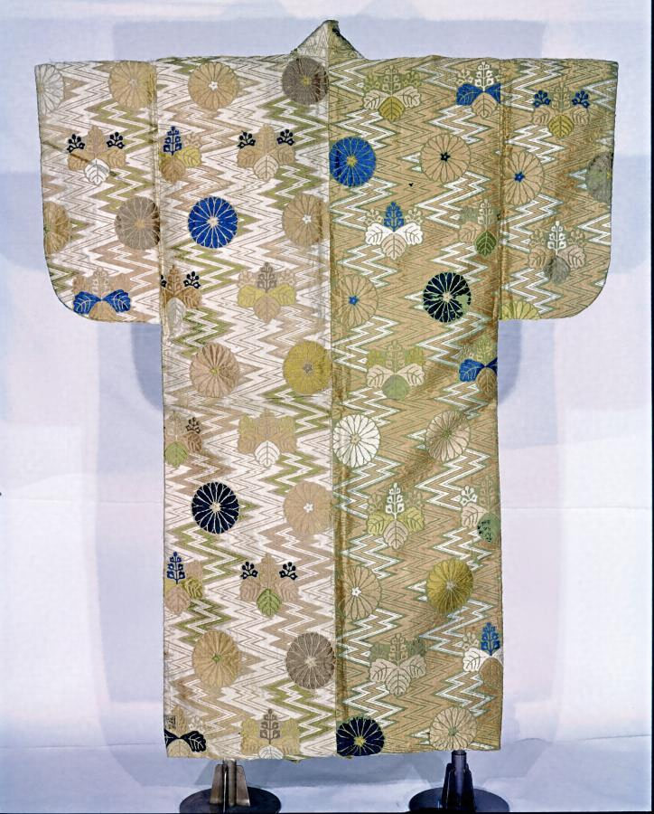 能装束〈紅萌葱地山道菊桐文片身替唐織/〉
