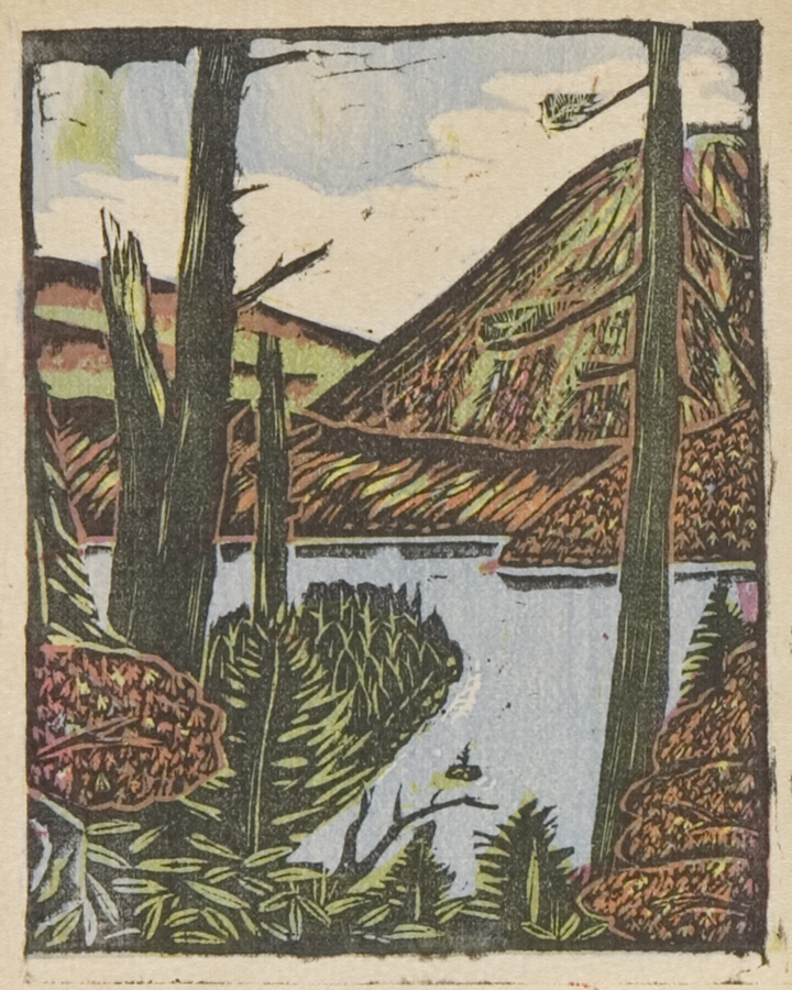 雑誌『新版画』第6号 国立公園特輯号 所収版画 7 足尾への峠より男体・中禪寺湖を望む