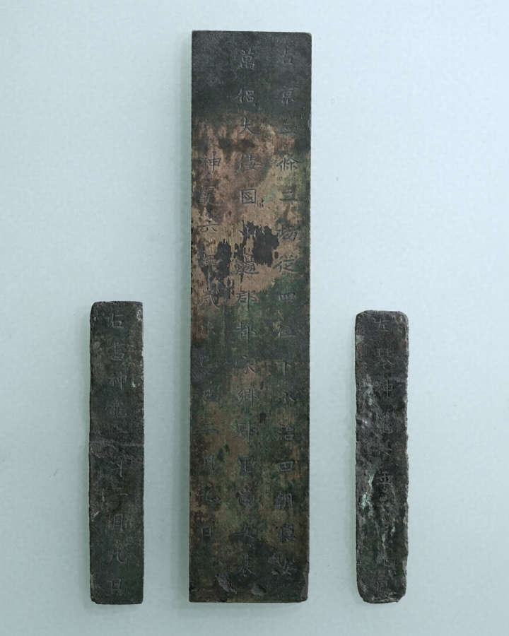 金銅小治田安万侶墓誌〈銅製小板二枚共/〉