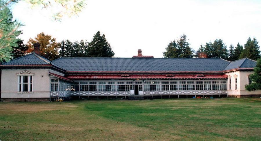 木造平屋建で,東西に長い主体部は桁行48.8mの規模をもち,左右両端を前後に突出させる。正面は中央部が張出し,玄関ポーチを設ける。