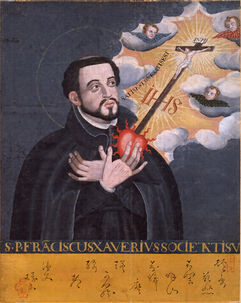 天文十八年(一五四九)鹿児島に来航し、初めて日本にキリスト教を伝えたスペイン人イエズス会士フランシスコ・ザビエル(Francisco de Xavier 一五〇六-五二年)の名は、その肖像画である本図とともに広く知られている。ザビエルは二年三か月の間、西日本各地のほか京都や堺にまで赴き精力的に布教した後、中国に渡り広東郊外の上川島【シャンチョワン】で没した。滞在期間は短かったが、キリスト教布教の基盤を築き、西欧に日本への宣教熱を呼び起こした。この後日本におけるキリスト教改宗者は急増し、やがて豊臣秀吉あるいは徳川幕府によるキリスト教弾圧の強化、さらには鎖国に至る大きな歴史変動の発端となったという点で、わが国の歴史上きわめて深刻な影響を及ぼした西洋人であるといえる。