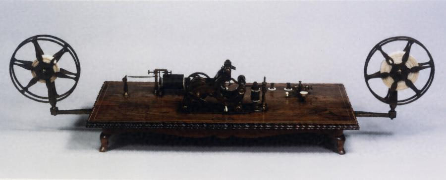 安政元年(1854)、江戸幕府との条約調印交渉のため再来日した米国遣日使節ペリーが、大統領フィルモアから将軍への贈品の一つとして持参したもので、我が国電気通信の発達の原点となる資料である。また、本機は本体基盤前部銘板銘文から、ニューヨーク、ブロードウェイのJ・W・ノートン社製であることが知られる。