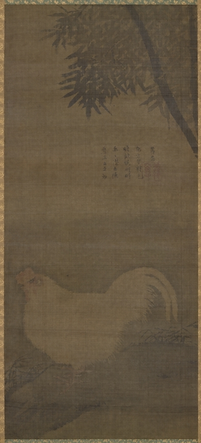 絹本淡彩竹鶏図〈蘿窓筆/自賛アリ〉
