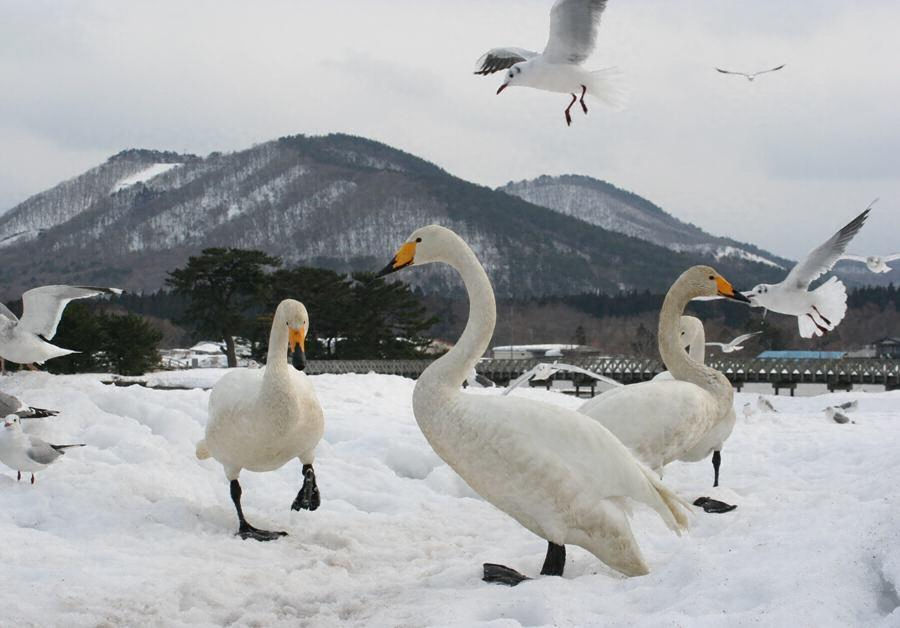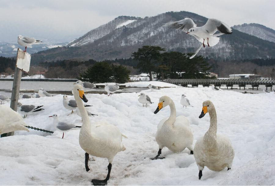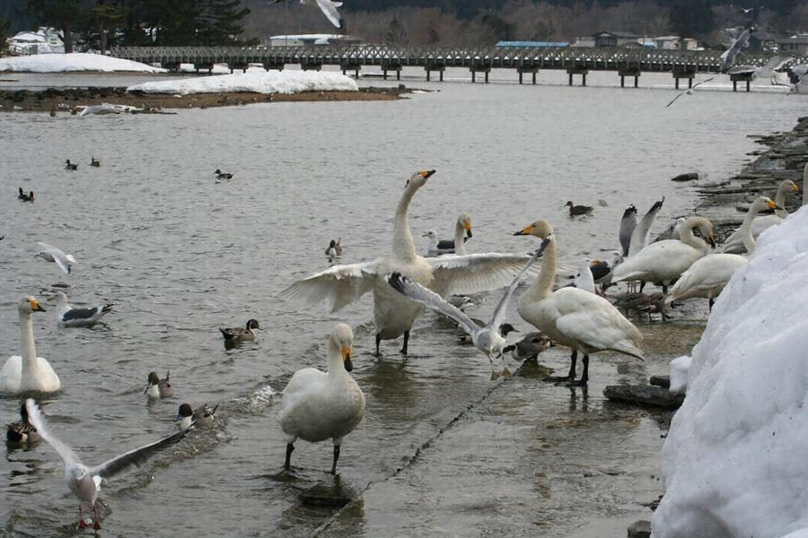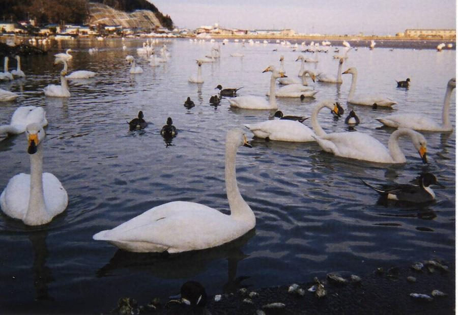 わが国に渡来するハクチョウはオオハクチョウで、小湊の海岸はその渡来地として古来著名である。冬季数百羽群泳してなごやかな景観を呈する。