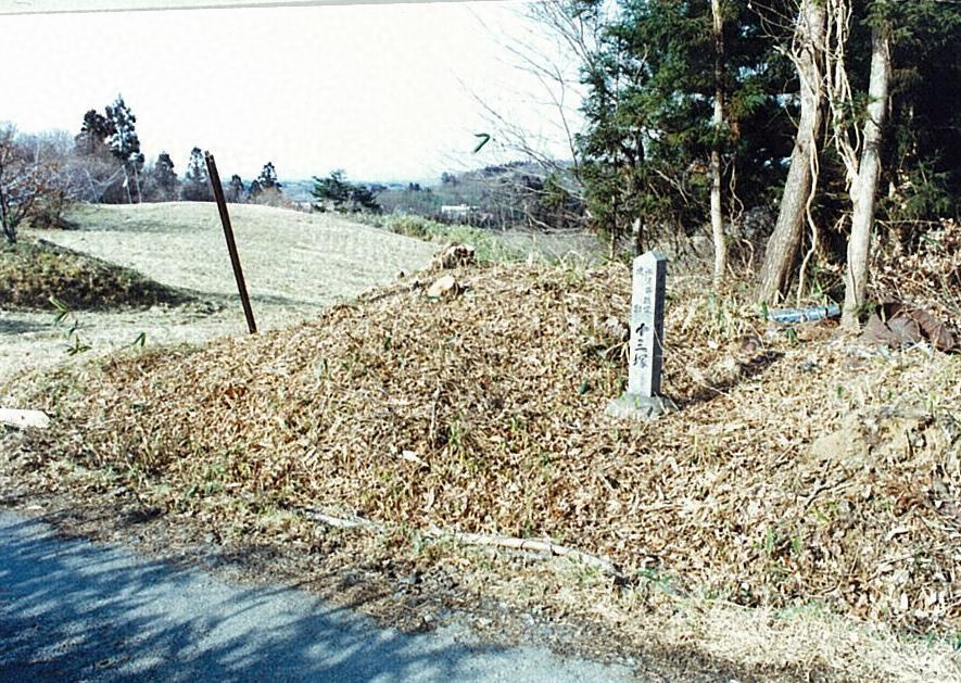 黒石の十三塚は、岩手県奥州市水沢区黒石町下柳の北上川左岸に位置する。昭和57・58年度に神奈川大学日本常民文化研究所が実施した全国調査により、13基が揃って残る全国17か所の1つであり、全体としての保存状況も良好である。
