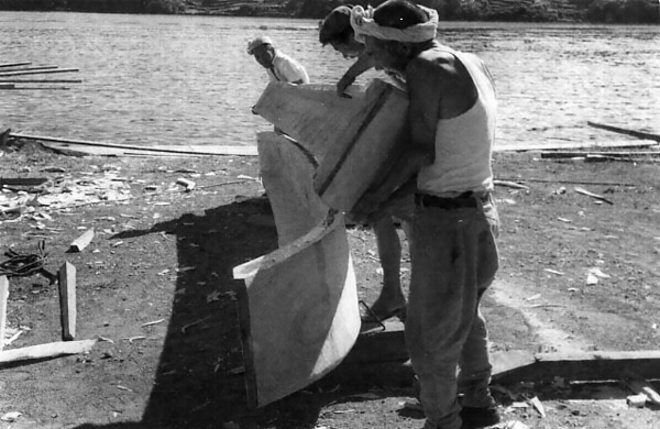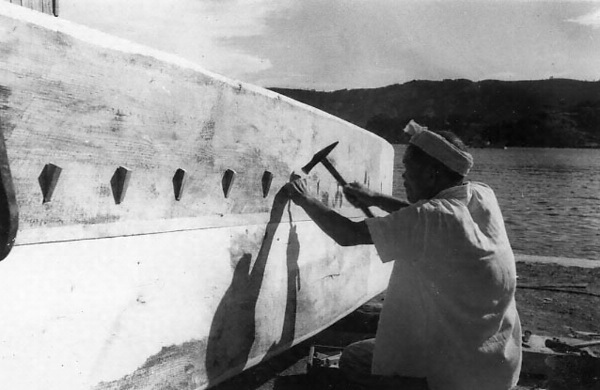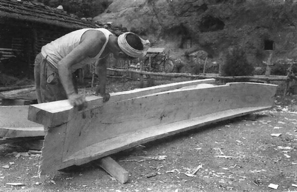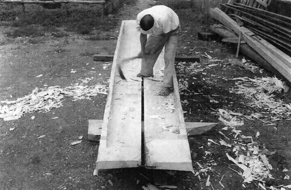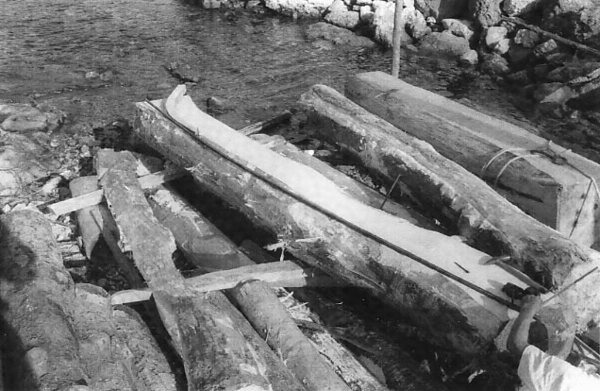 本件は、島根県の隠岐で、漁撈や漁獲物・海藻などの運搬に使用されてきた、ともどと呼ばれる木造和船を製作する工程である。ともどは、刳り抜き材を利用したおもき造りの系統に属する。その製作工程は、原木から粗々の型をとる「荒木どり」と、それを手入れする「仕上げ」に分けられ、その間に2カ月ほどの乾燥期間を設ける。