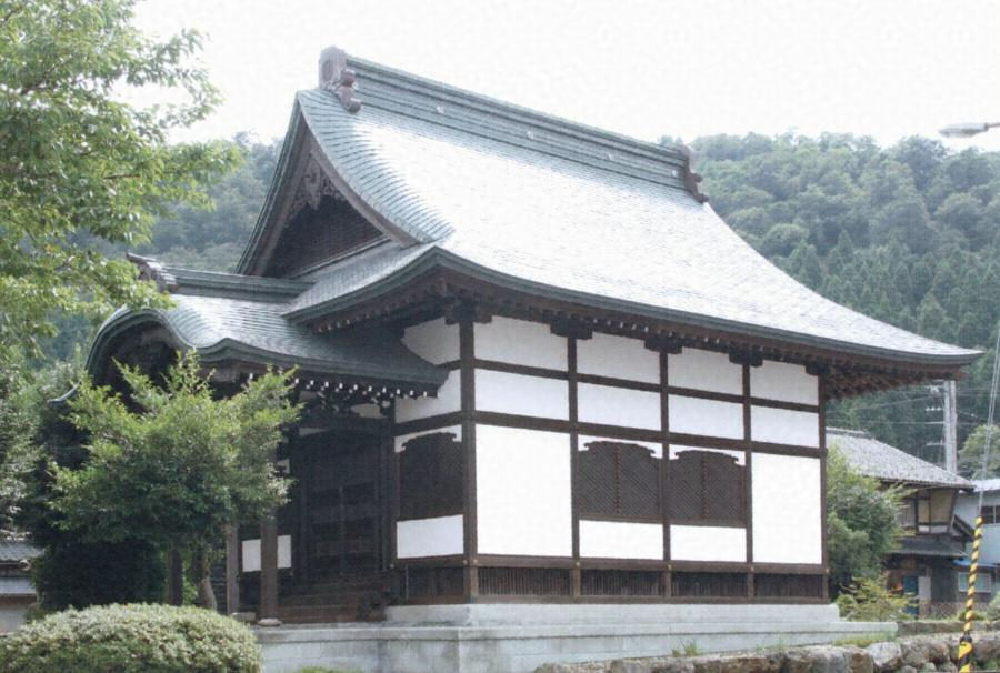 公園の後方に東面して建つ。入母屋造妻入銅板葺、桁行7.6m梁間6.5mの木造平屋建。正面に唐破風造向拝を出す。方柱で舟肘木、二軒半繁垂木。正面は中央に桟唐戸をたて、両脇に独特の花頭窓を穿つ。風格ある外観のなか、兎毛通しに繊細な彫刻が配される。