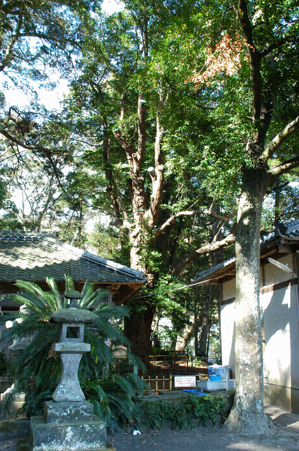 根元周圍四.五〇メートル、目通幹圍三.五五メートル、樹高約一五メートル、推定樹齡六百五十年ニシテ樹勢頗ル旺盛いすのきノ巨樹トシテ稀有ノモノナリ