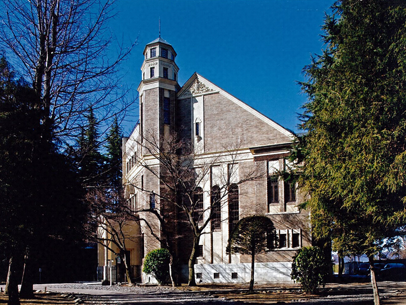 森山松之助の設計で、浴場と会館は、急勾配の切妻屋根とタイル張の外壁とし、要所に尖塔をたてるなど変化に富んだ外観になる。