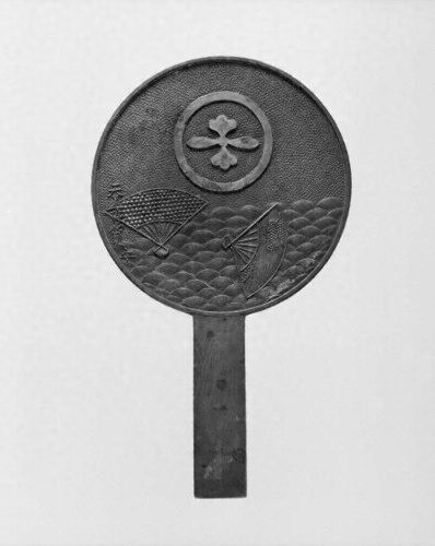 変り二ツ林棠紋入青海波扇柄鏡