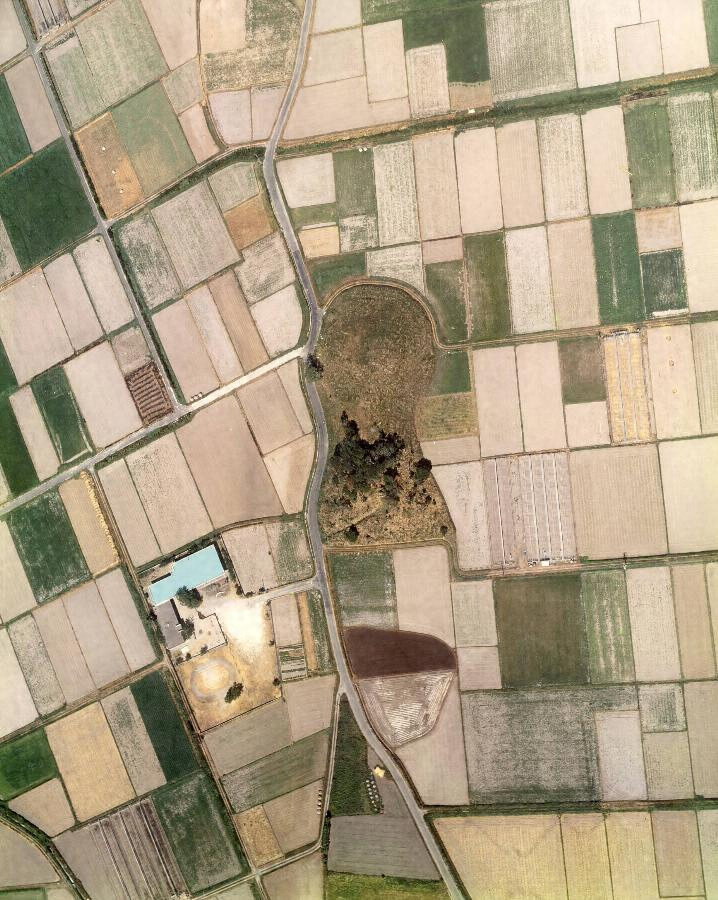 有明湾の西方約一粁の平地にあり、封土は前方後圓型にして略南々西に面し長徑約四百十尺、後圓部徑約二百十尺、高さ約三十四尺、前方部幅約二百六尺、高さ約二十六尺を有す、後圓部頂上に竪穴式石室の遺構ありて現在蓋石の一部露出し周裾に埴輪片散布し表面には輕石による葺石あり前方部に神社建立せられ少しく毀損せらるる所ありと雖尚よく舊態を保ち此の地方に於ける代表的の古墳なり。