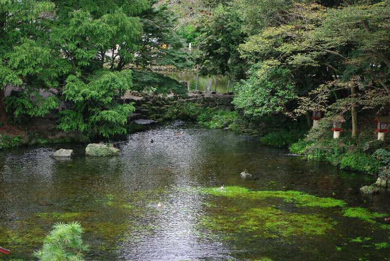 富士山の裾野に湧出する地下水の湛えられたるものにして淺間神社の境内にあり熔岩の裂罅を潜りて流下せる水はこの附近數ヶ所より地上に噴出す清冽なる水は集まりて一の河流となり其の流量は季節により増減あれども三島神社附近に於ける噴泉に比べて著しく大なり、新期火山の裾野に於ける最大の湧泉として著しきものなり。
