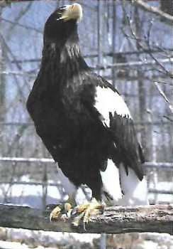 S44-12-018オオワシ.txt: オオワシは翼長65センチ、翼の開長2メートルに近い、わが国最大のワシ・タカ類で、冬鳥として本邦に飛来する。主として海岸近くや、平地の河川・湖沼の付近に生息する。樺太・カムチャッカ半島などで繁殖し、冬期北海道から本州の沿岸ぞいに南下し、まれに奄美大島や鳥島などに飛来することもある。単独で生活することが多いが、渡りの時は小群をなす。食性は動物質を主とし、魚類が多くウサギなどの獣類も食べている。