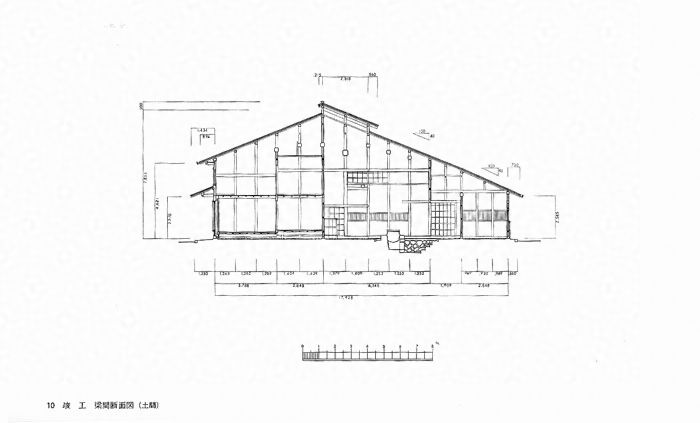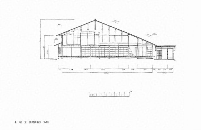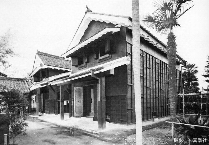 桁行14.3m、梁間17.9m、二階建、切妻造、銅板葺、
