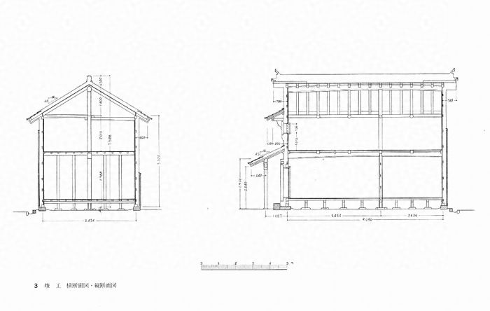土蔵造、桁行9.1m、梁間5.5m、二階建、切妻造、妻入、