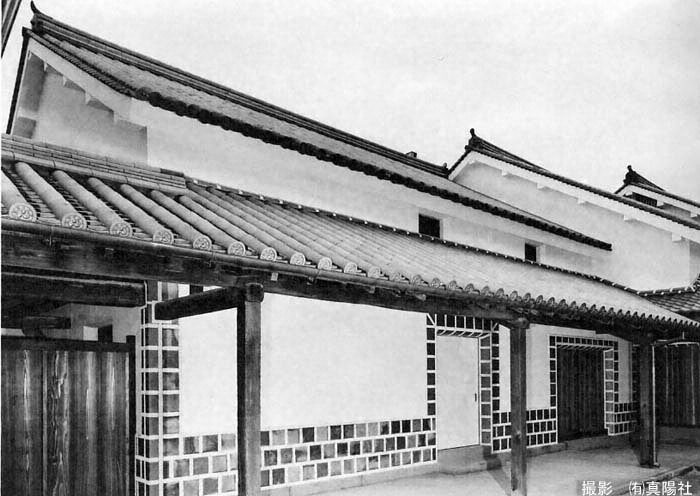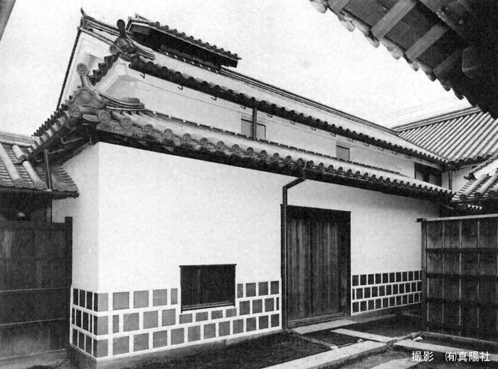 妻入、本瓦葺、北面、北面渡廊下、南面塀附属(アメヤ張)