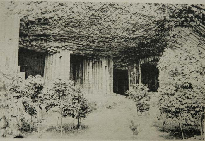 城崎温泉ノ南方約三キロメートルナル圓山川ノ右岸山脚ニアリ著名ナル洞窟ニシテソノ上下左右共ニ四角乃至八角(五角六角最モ多シ)ノ柱状節理ヲナセル玄武岩ヨリ成リ柱ノ直径ハ〇.三メートルヨリ〇.六メートルニ及ブ柱ニハ横断裂理ノ発達セルアリ裂理間ノ幅〇.一メートルヨリ〇.二五メートルニ及ベリ岩石ノ多少風化セル部分ニ於テ裂理殊ニ明暸ナリ斯ク横断裂理ノ著シク発達セルハ本洞ノ特色トスル所ニシテ他ニ多ク其ノ類例ヲ見ズ加フルニ本洞ハ紫野栗山曽テ之ヲ玄武洞ト命名シテ洞名ヲ石柱ニ刻セシヨリ漸リソノ名ヲ知ラレ後岩石名「バサルト」ヲ翻譯スルニ當リ洞ノ名ヲトリテ玄武岩トナシ一般ニ襲用スルニ至レリ