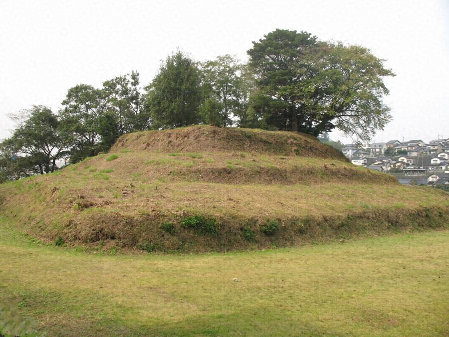 低キ丘陵ノ尖端ニ在リ山陰地方ニ於ケル代表的方型古墳ノ一ナリ封土ノ表面ハ既ニ開墾セラレテ段階状ヲ呈セルモ發掘セラレタル證跡ヲ認メズ