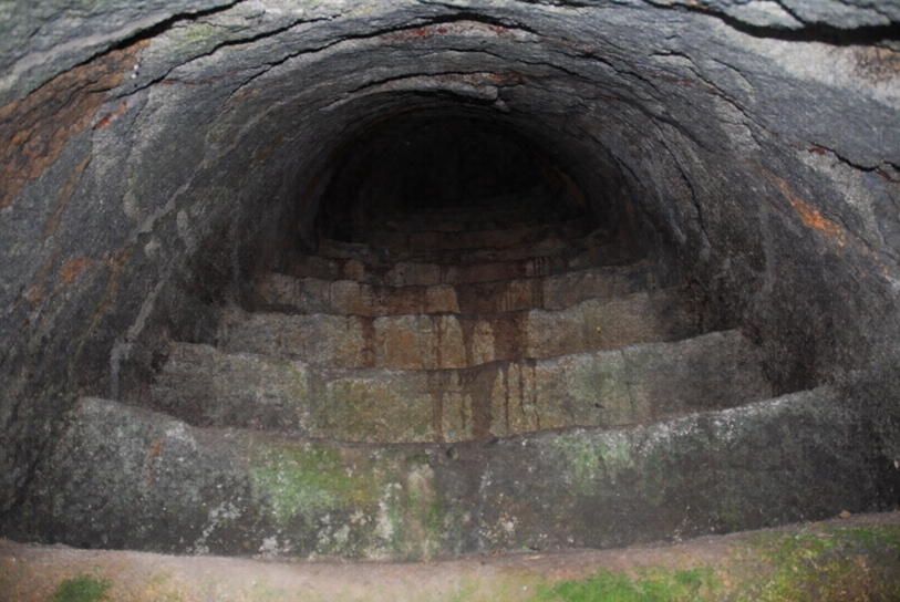 丘陵ノ斜面ヲ利用シテ築造セラル其ノ能ク舊態ヲ保テルモノハ自然ノ岩層ヲ隧道状ニ穿チテ底部ヲ十數級ノ階段トナシ奧部ニ煙出ノ設アリ附近ニハ奈良朝時代ノ瓦片多ク殘セリ