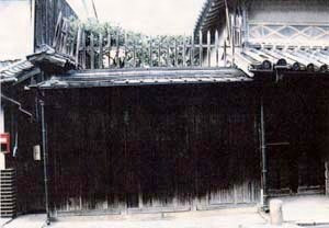 屋敷地の西側を画する屋根付きの板塀で,表通りの3間分は板張りとするが,敷地境の塀は腰下を切石積とし,上部をモルタル塗の新壁造とする。倉敷の明治期の上層町家の屋敷構えを構成する要素として重要である。