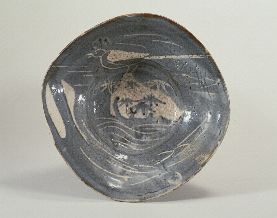 鼠志野は天正年間後期から文禄・慶長にかけて美濃の諸窯でいわゆる志野とともに焼造された代表的な陶芸であるが、この鉢は渓流に一羽の鶺鴒を図した鉢で、器形・文様・釉調ともに極めて完好で類品中の名作である。