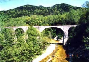 ひがし大雪鉄道アーチ橋群のひとつ。音更線工事第四工区にあたる旧幌加駅・旧十勝三股間の音更川に架かる。全長109mと大規模で、10mアーチ6連、23mアーチ(河川横断部)1連、10mアーチ1連の8連から成る。