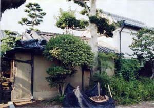 主屋の南方,三の蔵に接続して建ち,主屋と渡り廊下で連絡する。4畳半床付きの茶室,その東の3畳の水屋,これらの北の縁よりなる。茶室ではあるが,入母屋造,桟瓦葺で,西妻の破風を漆喰で塗り込め,装飾付きの掛瓦を用いるなど,重厚な外観をもつ。