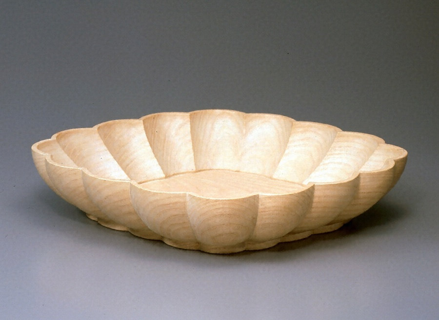 本作品は、会津桐を素材とし、刳物の技法で造形されている。茶道関係の棚物など桐材指物の製作を経て、桐材の刳物による作品を長年手がけてきた作者の技術の特色をよく示している。