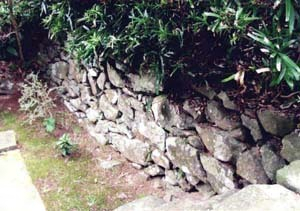 踏段は中央に切石,左右に自然石を組み合わせて豊かな表情をつくり,石垣は乱積とする。近世武家屋敷の表構えをよく伝えている。
